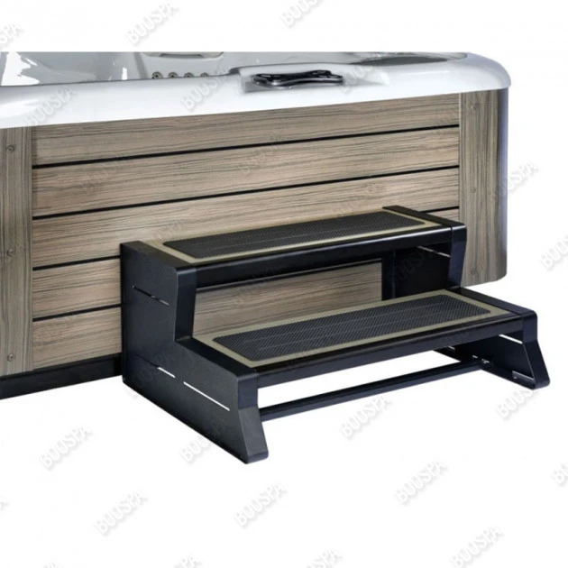 L’escalier de base proposĂ© ici peut ĂŞtre Ă©quipĂ© de marches supplĂ©mentaires comme le ModStep® 3 si vous souhaitez disposer d’un escalier 3 marches ou encore avec le ModStep® 4 pour les spas disposant d’une hauteur consĂ©quente.