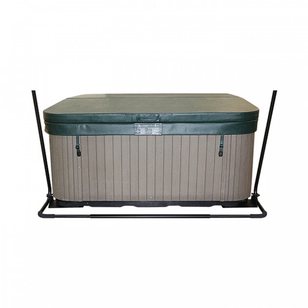 | Lève couverture de spa Coverplate 3 Ce lève couverture permet de retirer la couverture du spa sans effort en la faisant basculer sur le cotĂ©. La couverture est alors rangĂ©e dans un minimum d’espace, elle repose plus bas qu’un lève couverture classique. Montage par glissement sous le spa puis fixation dans la partie basse du spa (jupe ou châssis), 2 platines de fixation fournies.
